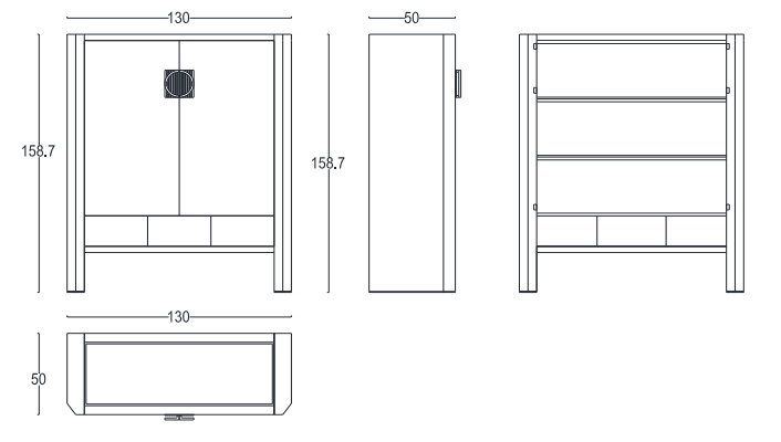 L 130 × P 50 × A 160