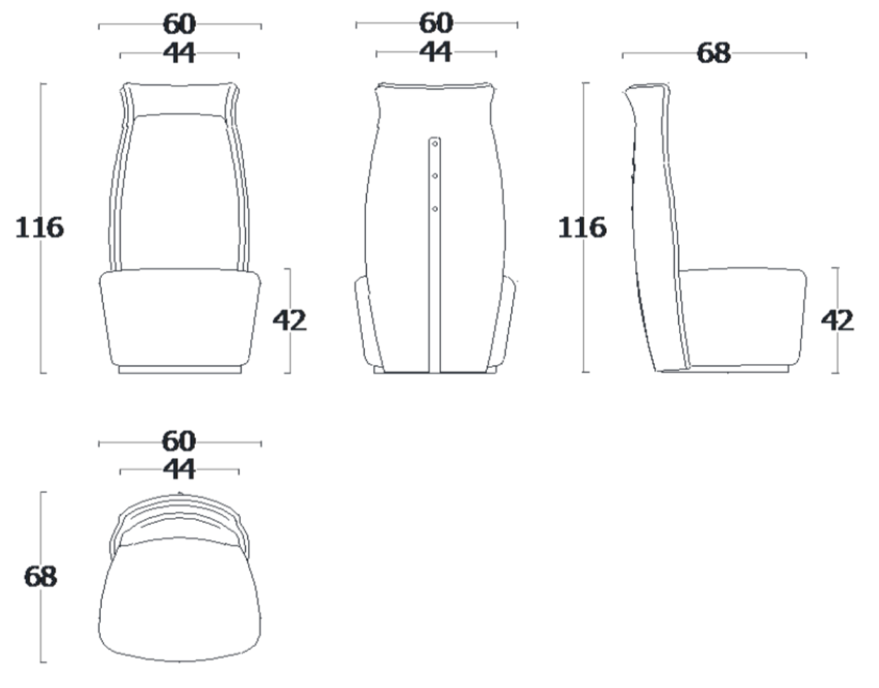 L 60 × P 68 × A 116