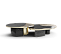 / Conjunto de Mesas Athena Mármore Nero e Ouro