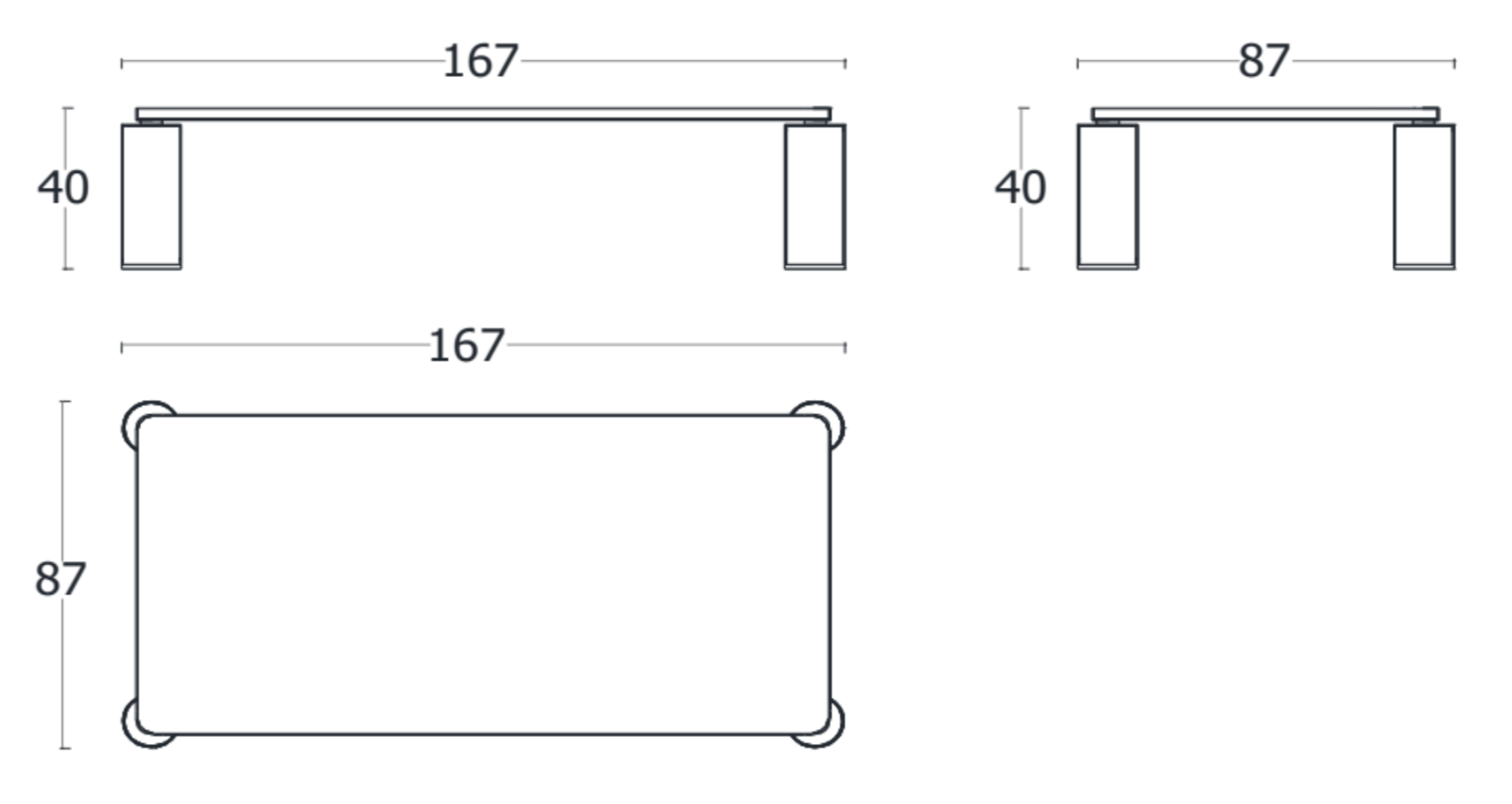 L 167 × P 87 × A 40