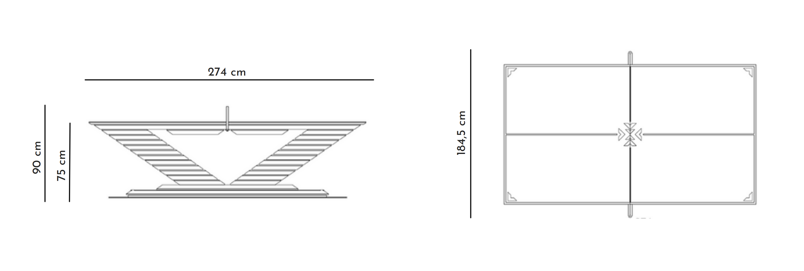 L 274 x P 153 / 185 x A 76 / 92