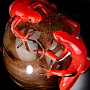 Ovo em Vidro Escuro com Geckos Vermelhos